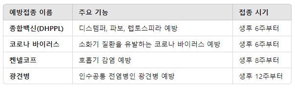 2. 강아지 예방접종 종류와 필수 예방주사