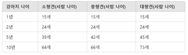 2. 소형견, 중형견, 대형견의 나이 계산법