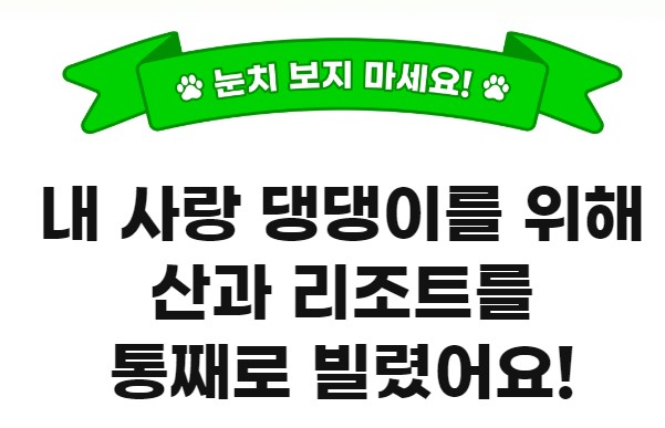 이 행사는 반려견과 견주가 함께 자연 속에서 자유롭게 힐링할 수 있도록 산과 리조트를 통째로 빌려 특별히 기획된 행사입니다.
