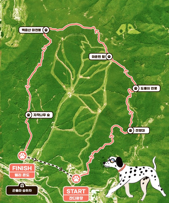 ✔ 코스 중간에 휴식 공간이 마련되어 있으며, 응급 상황을 대비한 반려견 케어 팀이 대기하고 있습니다.