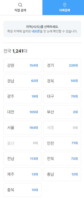 네프론은 전국에 수백 대 이상 설치되어 있으며, 다음과 같은 장소에 주로 배치되어 있습니다: